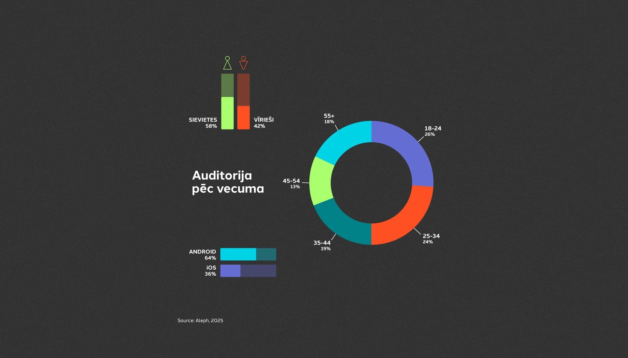 Latvijas Tiktok auditorija pa vecumiem, dzimumiem un operētājsistēmām